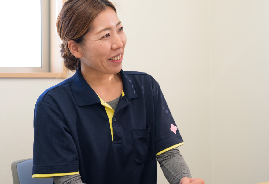 主な仕事はご家族やケアマネジャー、他施設のサービス事業者と連携し、情報共有すること。ご利用者さまやご家族から悩みをお聞きし、改善していくお手伝いもしています。